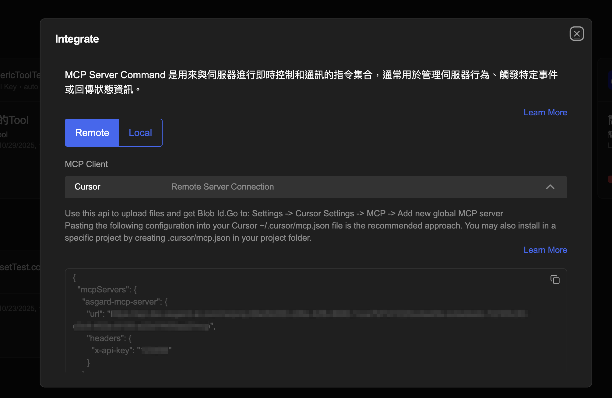 Asgard 提供遠端 MCP 設置,可以在 MCP Client 直接調用 Asgard Toolsets,不必另外安裝 Asgard MCP Server 應用程式。