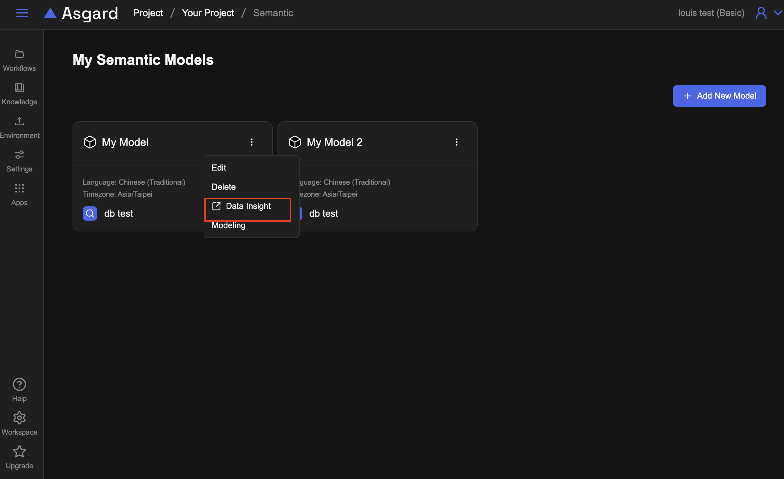 開始使用 AsgardSemantic Model使用模型建立圖表或儀表板本頁導覽使用模型建立圖表或儀表板可以使用建立好的模型,透過 AI 對話產生資料洞察圖表。 從 Semantic Model 進到 Data Insight 分析 可以透過列表頁或是詳細頁進入,更多詳細功能請參考 Data Insight Dashboard 管理。