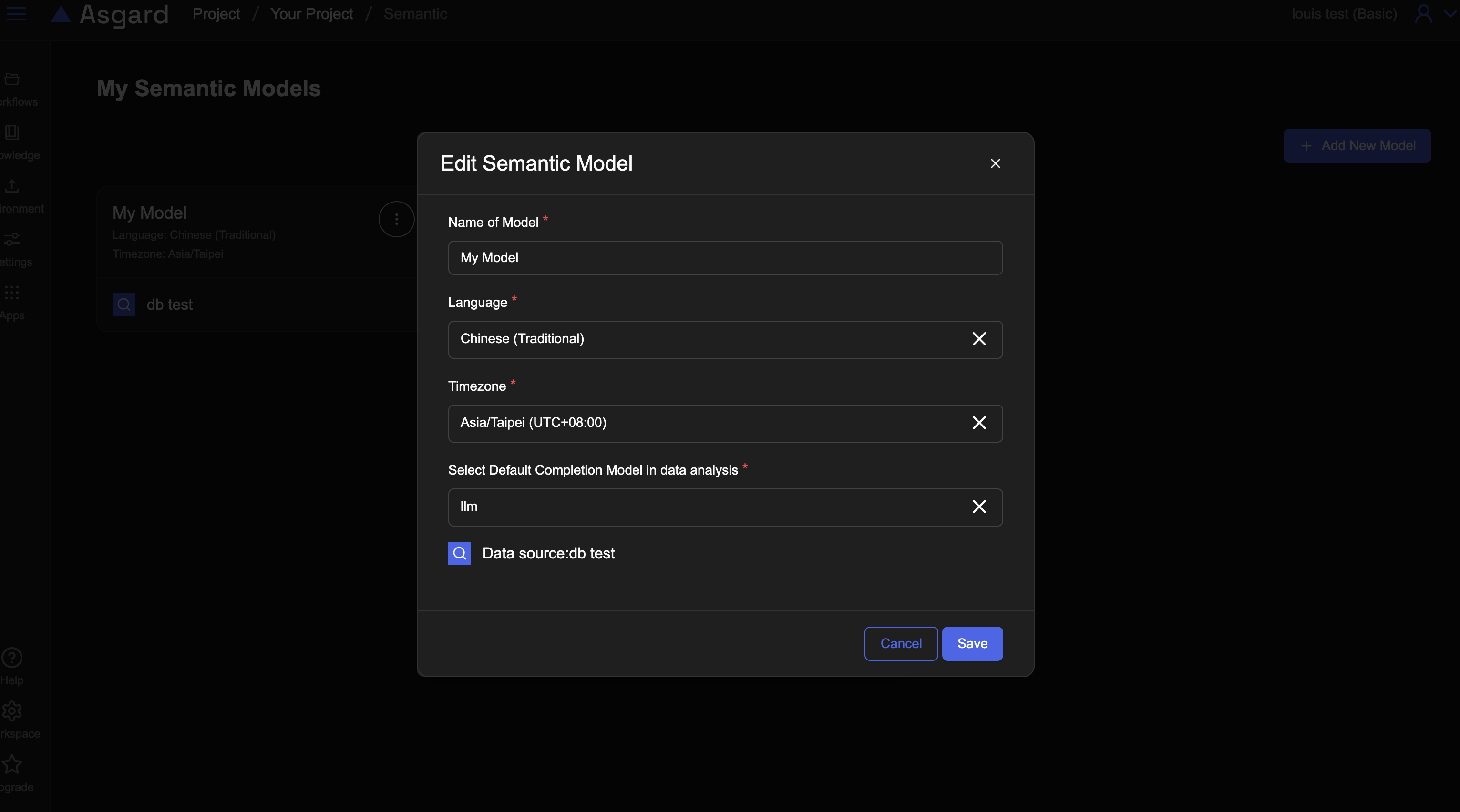 點擊編輯後,即可修改 Semantic Model 設定,請注意 Data Source 無法修改,如果要調整 Data Source 請另外新建 Semantic Model。