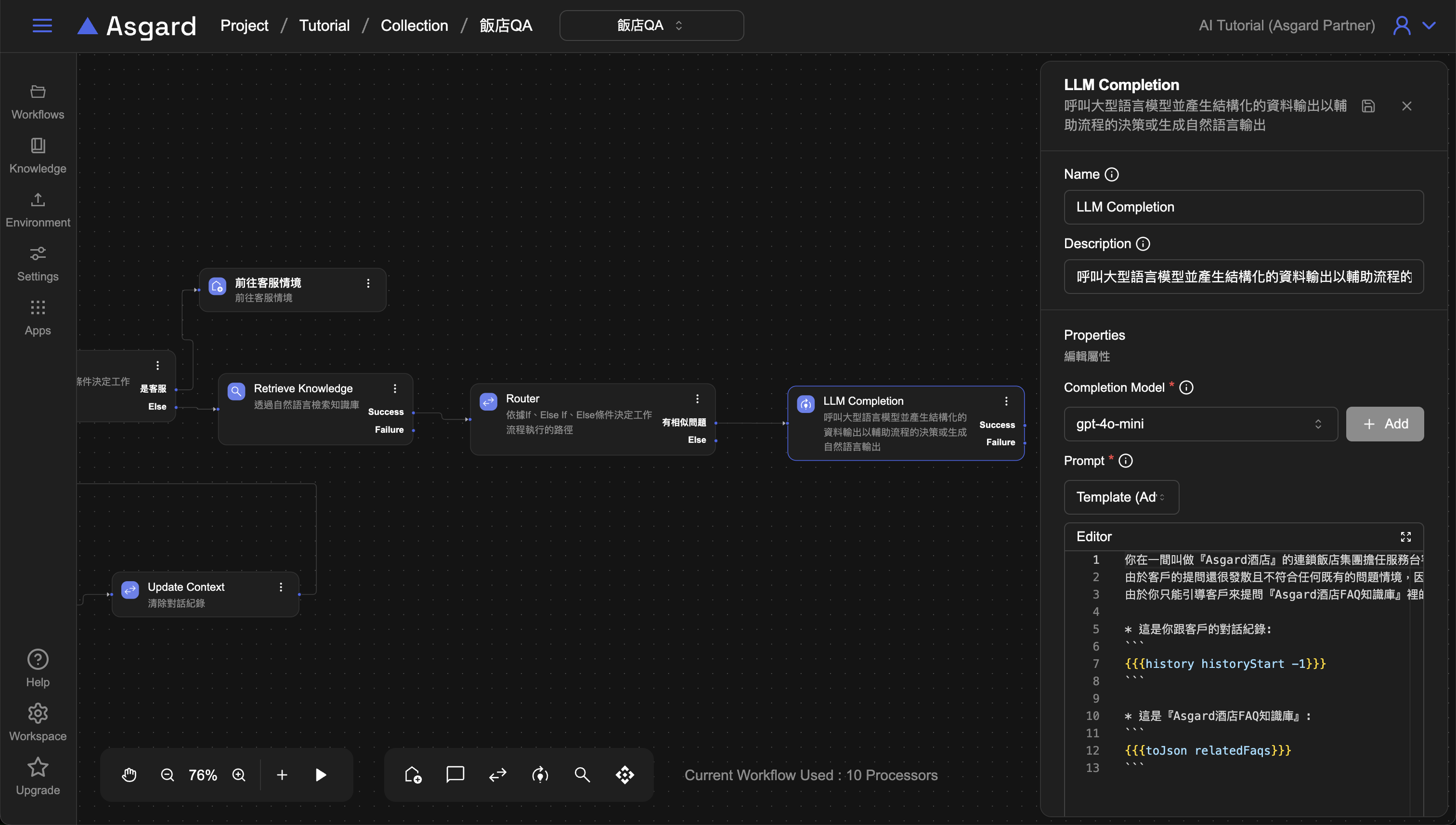 - Optional: 可以將 Processor 的 Description 改成容易識別的描述幫助工作流程的編排易讀性,例如改成「產生固定的追問問題與選項」
