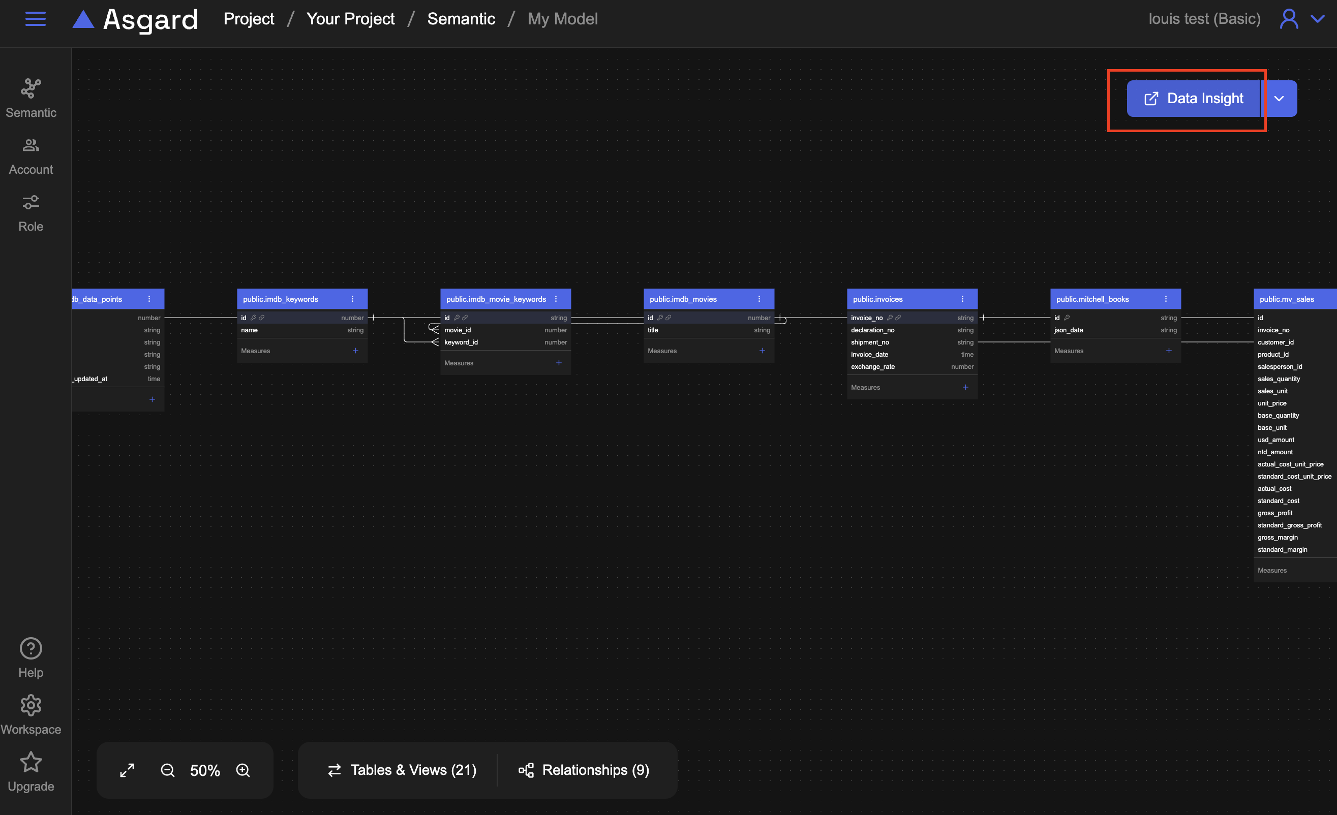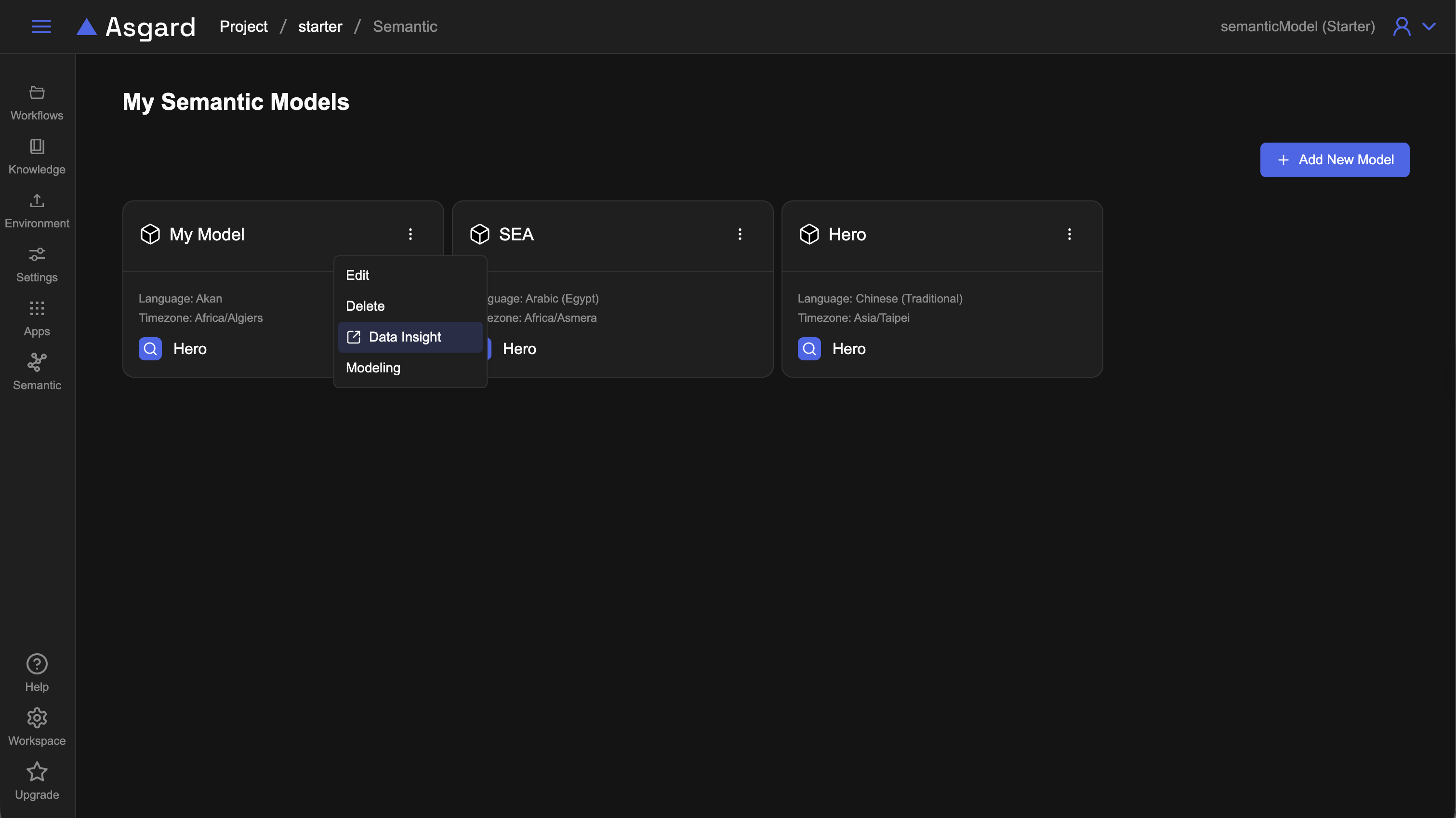 開始使用 AsgardSemantic Model使用模型建立圖表或儀表板On this page使用模型建立圖表或儀表板可以使用建立好的模型,透過 AI 對話產生資料洞察圖表。 從 Semantic Model 進到 Data Insight 分析 可以透過列表頁或是詳細頁進入,更多詳細功能請參考 Data Insight Dashboard 管理。